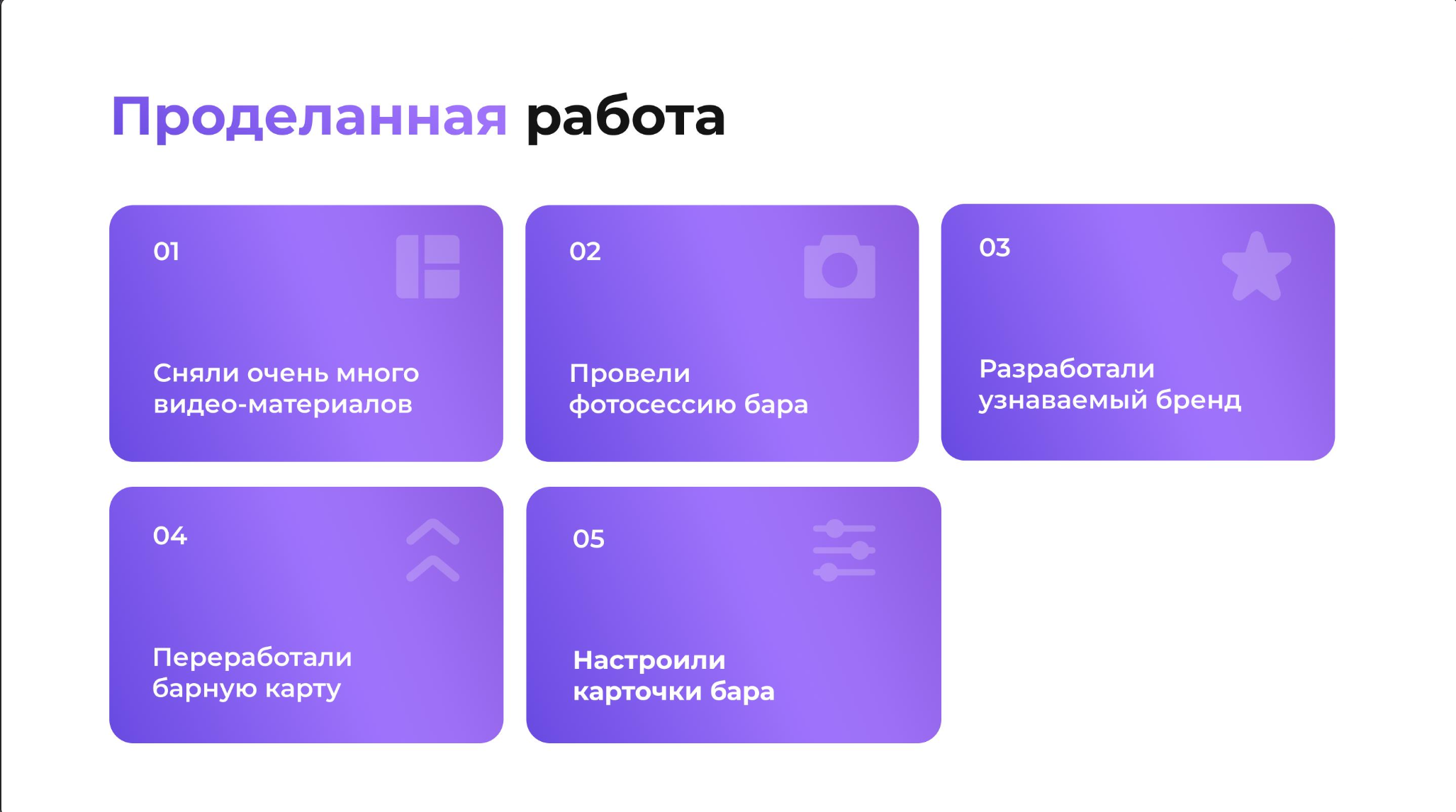 Создание фото и видео контента: Производство качественного контента, демонстрирующего атмосферу бара и его уникальные предложения.