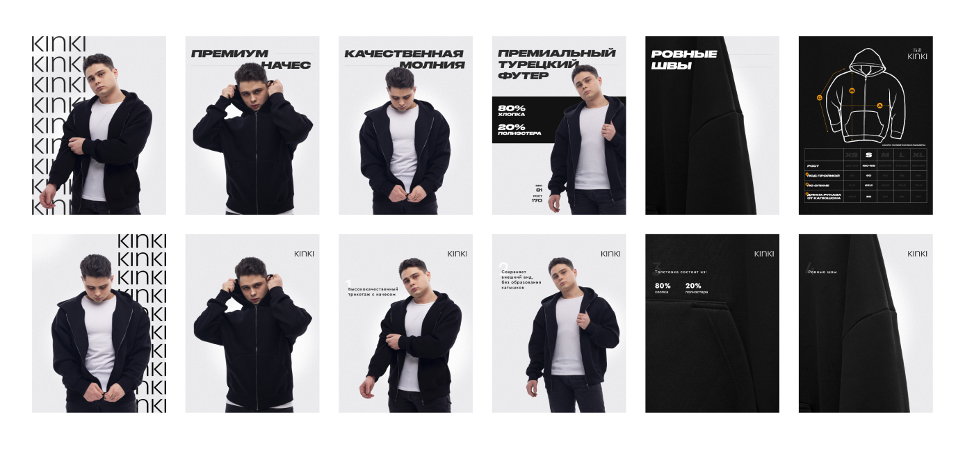 Клиент: Новый бренд одежды KINKY, созданный для запуска и продажи на ведущей российской платформе Wildberries. Целью было не только внедрение продукта на рынок, но и создание уникального имиджа, который бы отличал KINKY от конкурентов. Задача: Разработка бренд-бука и логотипа, формирование имиджевой стратегии и успешный запуск продаж первой партии одежды на Wildberries.